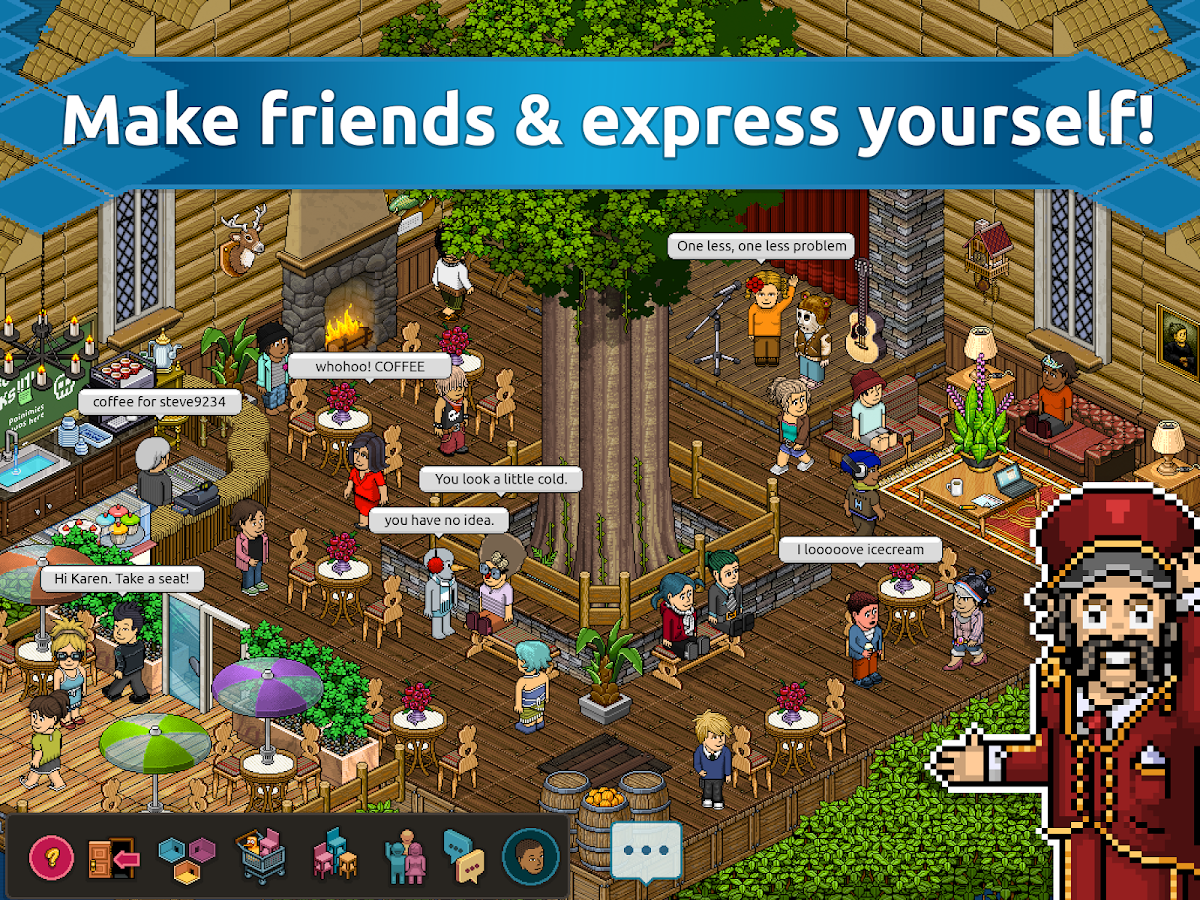 Expresse-se, construa quartos e faça amigos com milhões de usuários no mundo inteiro! Seja um explorador e crie quartos impressionantes em um estilo Pixel Arte retrô! Leve a comunidade com você para onde quer que vá e participe das atividades e competições diárias!